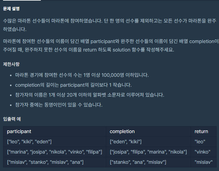 [알고리즘] 프로그래머스 완주하지 못한 선수 본문