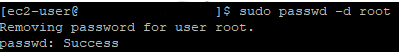 sudo passwd -d root 명령어를 사용하여 root계정의 비밀번호를 삭제한다.